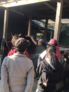 この後、少人数に分かれて数頭の馬を使って実際にやってみます。